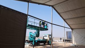 Organizing and equipping a tent with all furniture and equipment for the Iron and Steel Foundation Stone Laying Conference (Sponge Plant Construction Project). Organizing and equipping two tents with all furniture and equipment for the 25th Gulf Cup for the Ministry of Youth and Sports and the Media Authority for Journalists for 20 days. Organizing and equipping a tent with all furniture and equipment for the Gasprom Company in Kut, Al-Ahdab Field. Organizing and equipping a tent with all furniture and equipment for the Chinese company CPICC in Maysan, Halfaya Field.